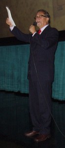 We finally get into the theatre and manage to nab the last three seats all the way down in the front row. We’re just in time as the President of the FFF, Henry Maldonado, is beginning his introductions.
