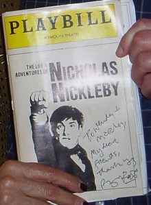 Marty and Wendy have just celebrated their 40th anniversary this year. After the performance of What You Will, they wait outside the theatre to meet Roger. They ask him to autograph their original Playbill from Nicholas Nickleby. Roger borrows a pen from Mrs. LanceAround and, in a poignant gesture, insists on personalizing their playbill: